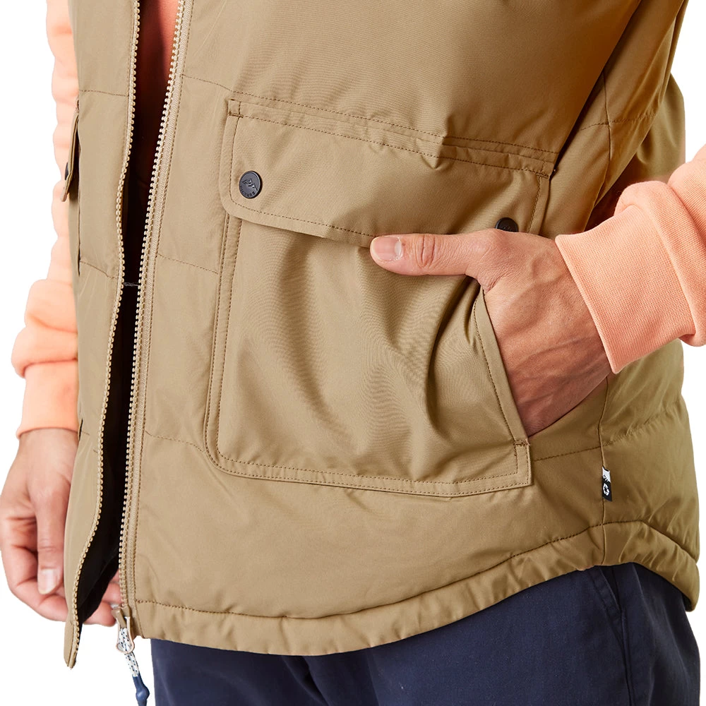 The Russello Vest is a sleeveless puffer jacket designed for warmth, comfort, and style. Sustainably crafted with a recycled polyester blend, it features recycled synthetic insulation, our sustainable membrane, and a PFC-free durable water repellent treatment to keep you warm and dry during the coldest days this winter. The high collar has a soft lining for added comfort. An all-time outdoor classic revisited for everyday urban life.